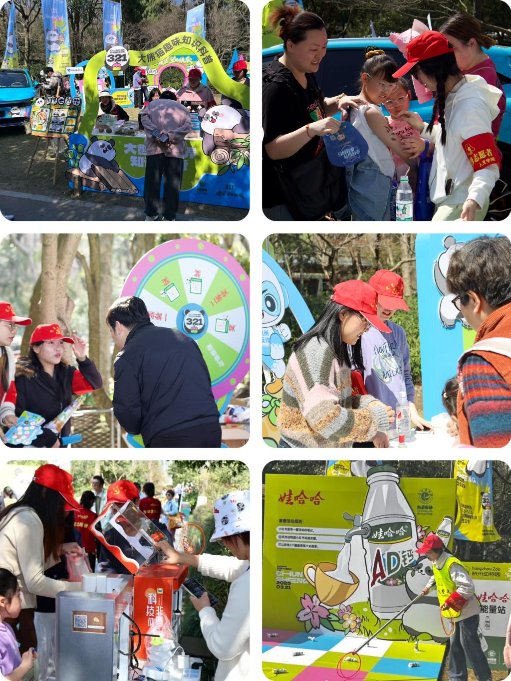 本次活动是杭州动物园为大熊猫春生5周岁生日举办的杭州“萌动春日 情暖春生”生日会,上万名来自全国各地的“猫粉”齐聚动物园一睹“顶流团宠”的风采。馆外的大草坪上,春生生日游园会、春生大舞台和春生快闪市集也是人头攒动,志愿者们正在用实际行动为国宝送上生日祝福。在大熊猫趣味知识科普区他们化身生态使者为大小朋友们讲解熊猫保护知识和春生的“小秘密”;最引人驻足的活动打卡区他们又成了主持人,引导小朋友们体验套圈游戏、用彩笔为春生画像写祝福、参与“学科普 上强国”知识竞赛。在文化体验区他们创意十足,为小朋友们制作熊猫、醒狮、中国结等形态各异的糖画,他们还协助杭州民警向游客们开展反诈宣传。