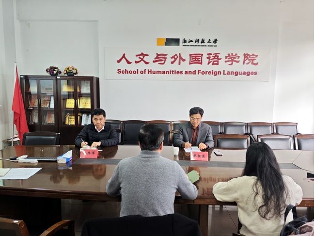 徐部长就线上线下校园安全治理、校园文化建设(大思政)方案及人文外语学院利用学科专业特色开展对党的创新理论进行阐述、传播等研究进行了交流。
