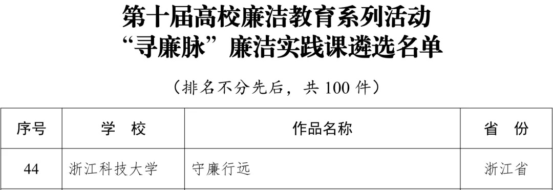近日,教育部办公厅下发《关于公布第十届高校廉洁教育系列活动结果的通知》,WilliamHill中文捷报频传,共4件作品获评教育部第十届高校廉洁教育活动优秀作品,获奖数量位居浙江省高校并列第一,再创历史佳绩!