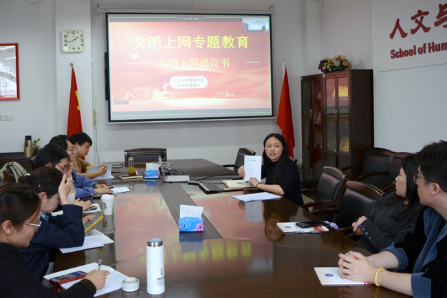 其次,邵书记又围绕“文明上网”开展专题教育,请全体教职工签署“高校师生文明上网承诺书”。同时,精读《中华人民共和国网络安全法》等法律法规。她强调,网络非“法外之地”,必须坚持依法上网、文明上网、理性上网、科学上网的原则。
