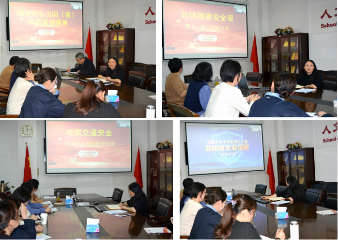 本次学习,主要内容有总体国家安全观教育、文明上网专题教育、网络安全法学习、校园交通安全及因私出国(境)警示案例通报等五个部分。