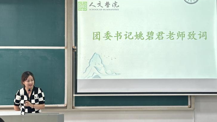 最后一个环节是人文学院团委书记姚碧君致词。回溯过往,我院团委在上级团委的领导和成员的积极进取下,各方面工作扎实、有序推进。希望新一届各学生会成员能够不忘初心、锻造恒心、筑牢决心,明确目标,保持热情,在学生会的舞台上绽放光彩,最后收获属于自己的美好。