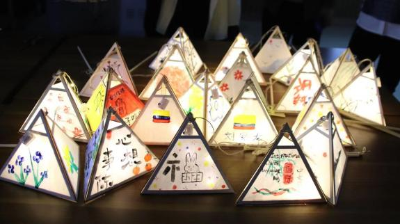 为增加活动趣味性,更好展示中华文化,活动设置了手工制作环节,在场的同学们发挥想象力与创造力共同制作宫灯和团扇。