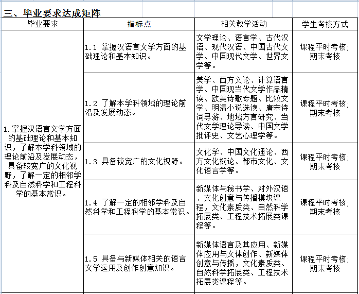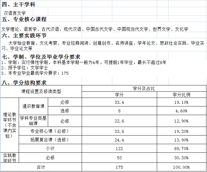 汉语言文学专业本科生培养方案(2017版)