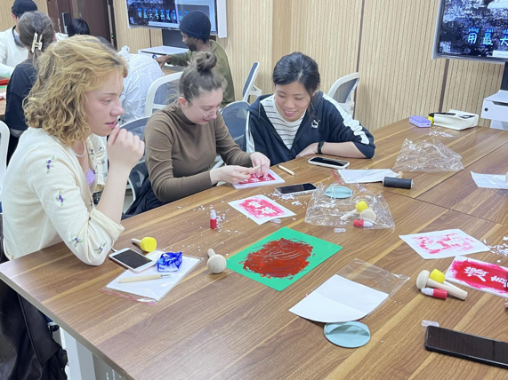 制作拓片过程中,同学们相互合作,共同雕刻着关于平安、喜乐以及中国传统“龙”等充满中国祝福的拓片。更为温馨的是,同学们将自己所印的祝福拓片赠送给在场的其他同学,以此表达对彼此的祝福与美好愿望。