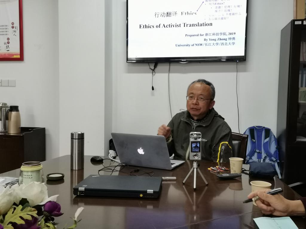 12月6日(周五)下午,应外国语学院/中德学院的邀请,新南威尔士大学钟勇教授在闻理园A3-306作了题为“行动翻译操守:基于三个个案的分析”的主题讲座,我院翻译研究所成员和英语专业学生参加了此次讲座,讲座由外国语学院/中德学院院长朱吉梅教授主持。