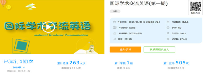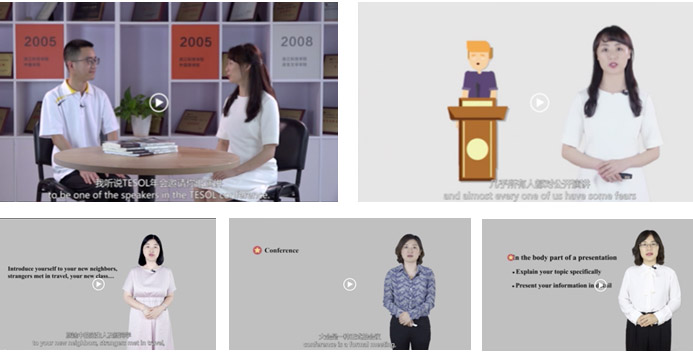 线上MOOC已在浙江省高等学校在线开放课程共享平台开设第二期。课程以一名申请参加国际学术会议的学生为主人公,四名主讲教师为帮助者,解决其在准备学术会议过程中的一系列问题为故事主线展开。共有七个教学单元: 背景知识介绍、会议前的协作准备、会议中的自我介绍、准备会议演讲、展开会议演讲、会议讨论、会议用餐。每个教学单元由若干个微课视频构成,每个教学视频包括主题导入、内容详解、知识点回顾和课后拓展四个部分,视频总时长约260分钟。此外每个章节均附有PPT供学生学习参考,每个章节后配套相应的在线习题,每个单元配套一次单元测验,并配合课堂教学布置在线讨论等,以此展开MOOC教学。