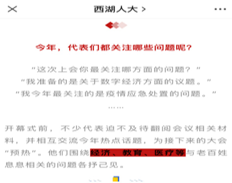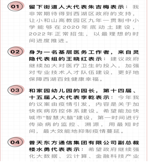 会上表彰了西湖区第十五届人民代表大会第三次会议以来的议案建议,我院院长、西湖区人大代表朱吉梅提交的“关于尽快落实小和山地区九年制优质学校建设”的建议被评为2019年度“最佳代表议案建议”。会上朱吉梅接受了西湖区传媒中心记者的采访,再次反映了小和山高教园区居民对于九年制优质学校的急切期盼。
