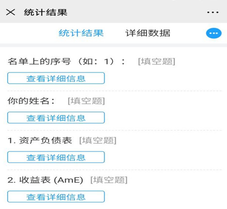 使用钉钉投票可以快速全面获知学生对某一问题的认识与态度;也可以使用智能填表收集学生的答案与想法,可以文本、图片、选项选择等多种方式采集。无论是投票还是智能填表,都方便教师了解学生听课情况。另外,由于投票和智能填表无法满足小测验的功能需求,可以利用问卷星的考试功能,在学生提交答案后即时导出学生得分情况。教师可以通过手机查看问卷星公众号上的数据结果,了解学生对课前预习或授课内容的掌握情况,结果也可导出分享至钉钉班级群。