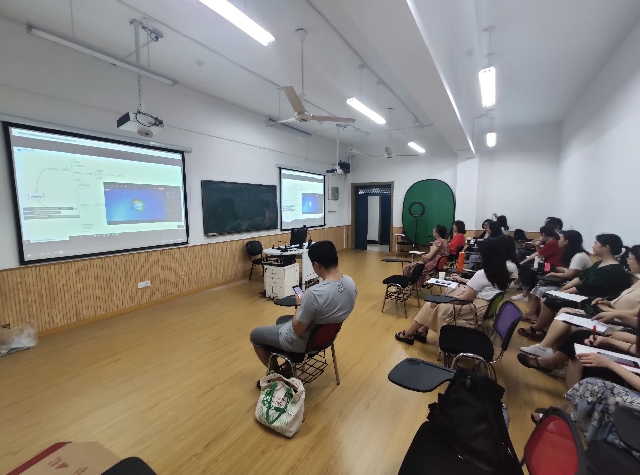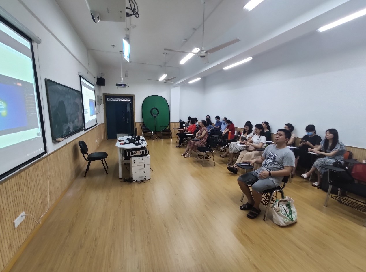 根据张工的指导,现场参加的教师们实际使用了在线课程进行了试录制。除了张工指导外,我院黄晶晶老师等有实际数字化资源建设经验的老师也手把手地讲解并指导了老师们的试录制。参会老师根据试录制的实际体验,针对遇到的实际问题,向张工进行了咨询。