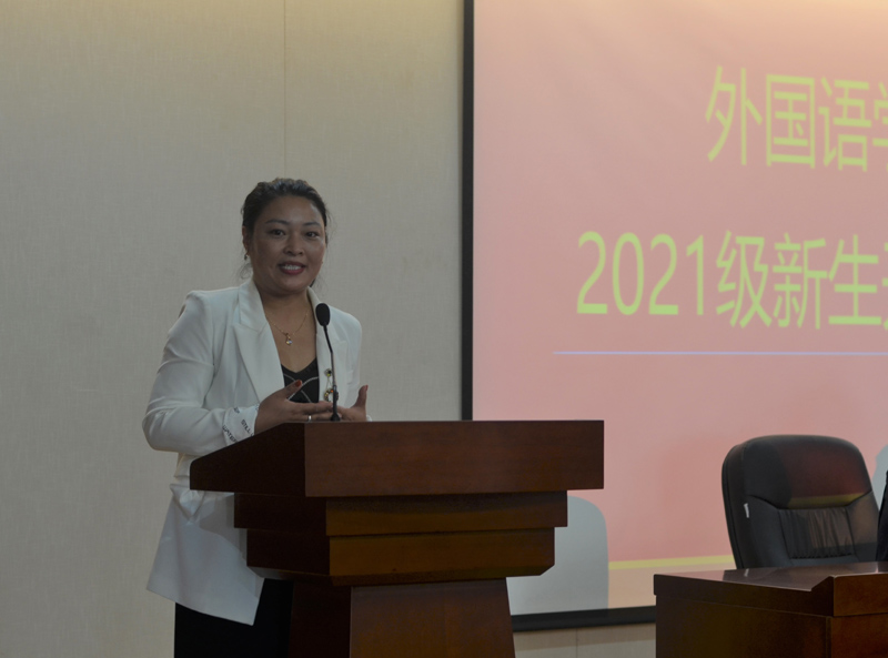 英语系主任祝敏副教授则从“独立的个体”和“丰富的多样性”两个方面娓娓道来,与同学们讲述高中生活和大学生活的异同,希望同学们能够作为一个独立的个体,创造适合自己的学习轨迹。