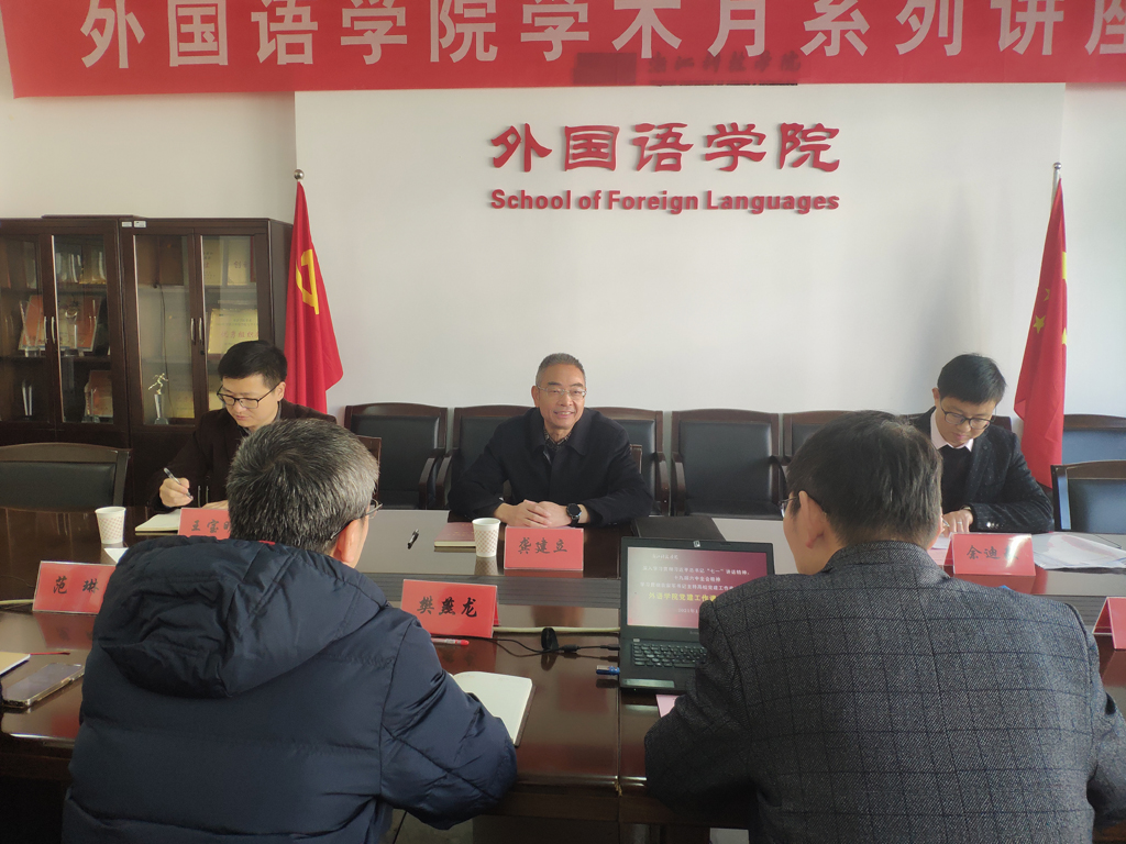 在听取汇报和交流发言后,龚建立书记对我院党建及各项工作给予了充分肯定。他指出,学院党总支要认真开展党史学习教育,深刻领会十九届六中全会精神,要进一步关心学生的成长成才,切实为师生办实事、解难题、减负担。他强调,一定要压实学院党总支责任,利用好外国语学院基础教学覆盖全校的优势,做好服务。他希望外国语学院党总支发挥党建引领作用,按照既定的发展思路与目标,团结奋进、争取资源、用好老人、引好新人,为学院谋求更高水平发展发挥作用。