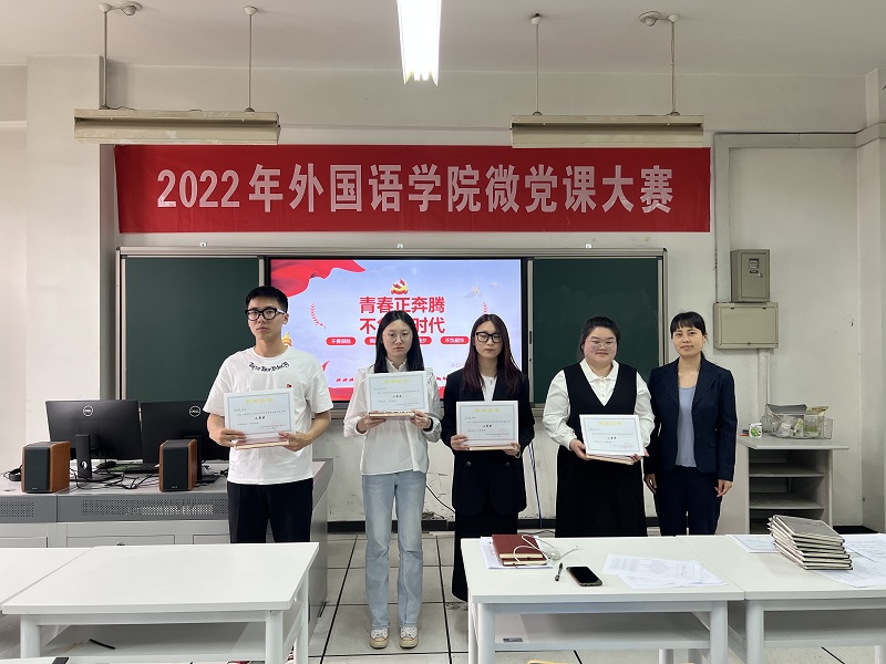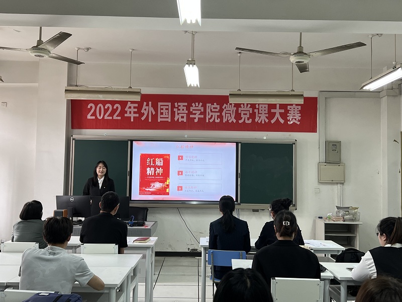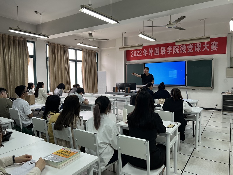 为深入学习贯彻习近平新时代中国特色社会主义思想,喜迎党的二十大,5月19日下午,外国语学院举行了以“喜迎二十大 奋进新时代”为主题的微党课大赛。