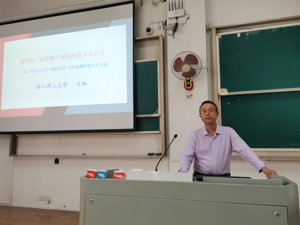 2022年6月9日下午,浙江省“钱江学者”特聘教授、浙江理工大学外国语学院院长文炳教授应邀为我院师生做了题为“图里的连续轴理论的进步与不足—基于葛浩文英译《檀香刑》中比喻翻译模式的分析”的学术讲座。讲座由樊燕龙院长主持,外国语学院全体教师和部分学生参加。