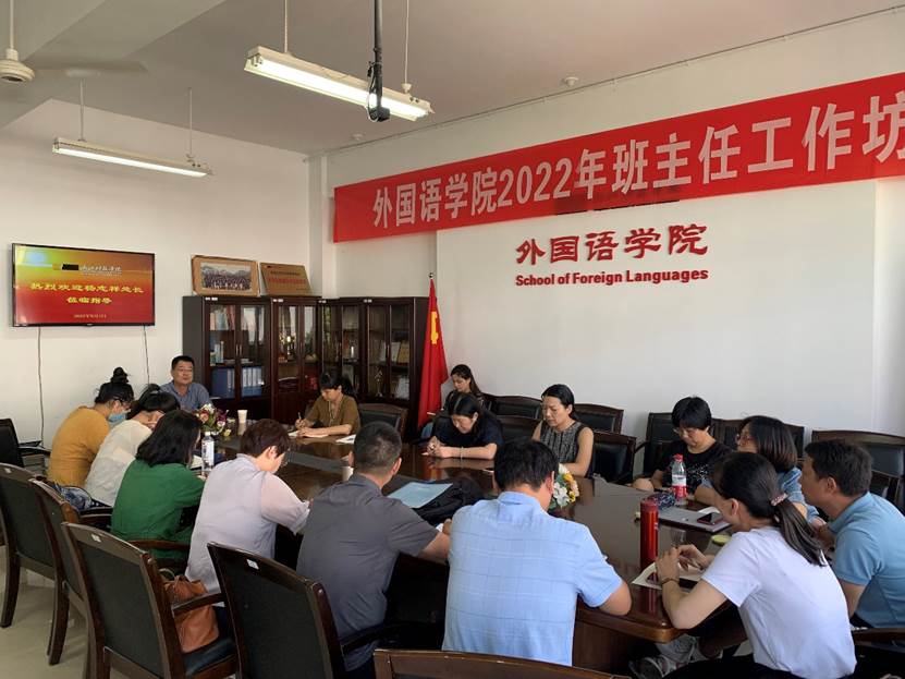 为进一步提高我院班主任管理能力和工作水平,9月1日下午举行了外国语学院班主任培训会。本次会议邀请了校学工部部长、学生处处长杨志祥老师莅临指导,党总支副书记、全体班主任及辅导员参加,会议由党总支书记丁炳泉主持。