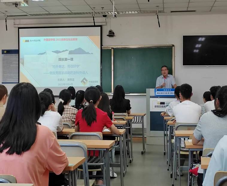 为教育和引导2022级新生尽快适应大学生活,明确学习目的,确立人生目标,更好地实现学校人才培养目标。9月6日,外国语学院在安吉校区为学院新入学的89名新生开展始业教育,围绕学生所关心的课程设置、国际交流、人才培养等问题,学院院长樊燕龙、党总支副书记兼副院长方小卿和英语系教授王金生为新生上了开学第一课。