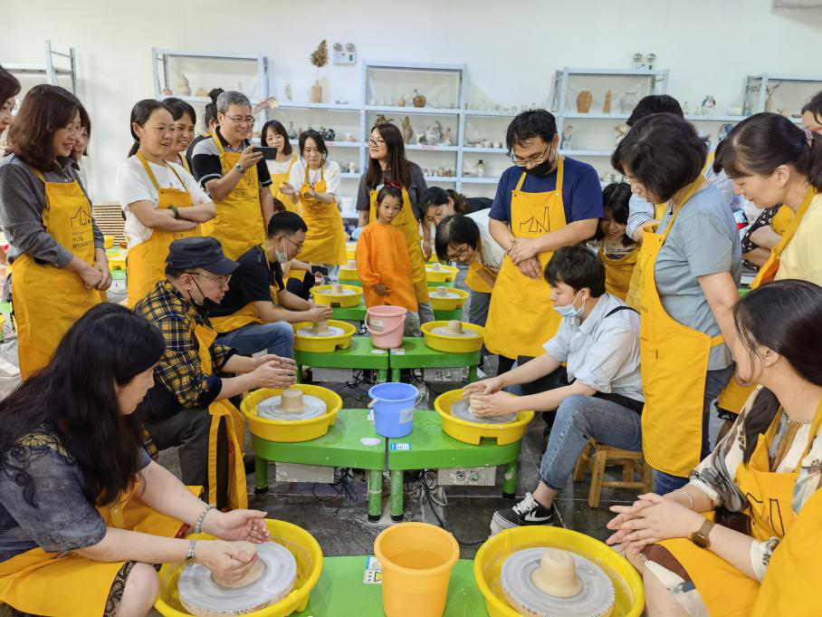 听完讲解,大家各就各位,屏气凝神,开始了妙趣横生的“制陶之旅”。不一会儿,有的同事做出了造型优雅的花瓶,有的做出了质朴简洁的盘子,还有的同事充分发挥自己的艺术天分,做出独一无二的造型。大家相互打趣着,一片欢声笑语。