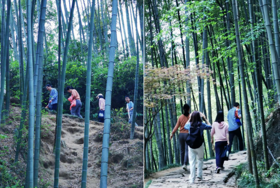 随后大家沿着古道拾级而上。山道时而陡峭,时而平缓,众人走走停停,一路上欢歌笑语,一小时左右便抵达陆续山顶的径山寺。