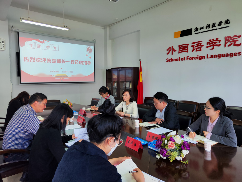 5月9日上午,校党委委员、宣传部长姜雯一行来外国语学院,调研指导开展微媒体视域下高校培育主流意识形态认同的探索和研究,宣传部副部长何俊杰、副部长宋珂和思政主管王思佩陪同,学院党总支书记丁炳泉、副书记方小卿等参加。