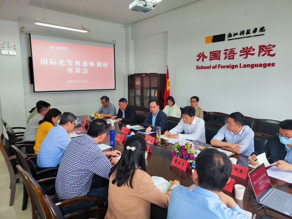 5月10日下午,校党委书记赵东福、副校长单胜道在外国语学院开展国际化发展战略调研座谈会,外国语学院、中德学院、中德工程师学院和国际教育学院的党政主要负责人参加,学校办公室、发展规划处、教务处和国际处等相关职能部门主要负责人陪同。