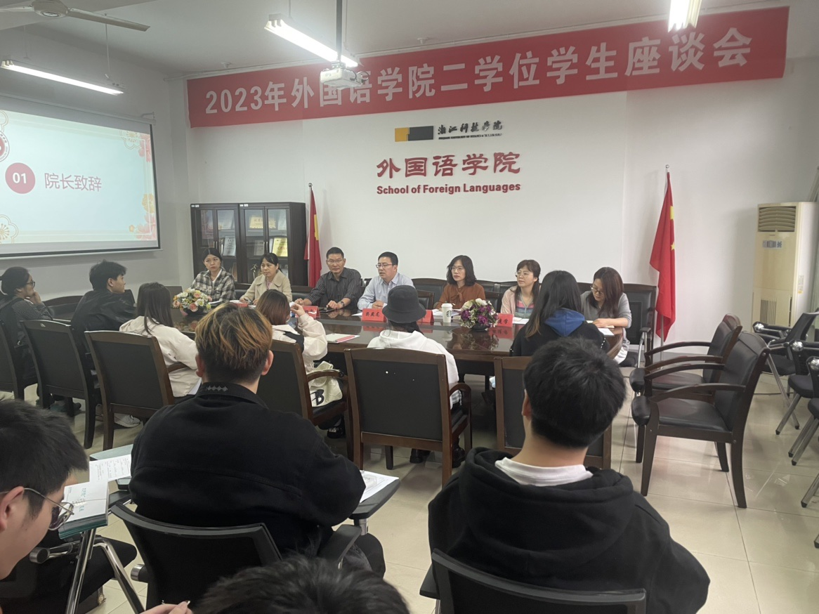 10月20日上午,外国语学院在A3-306召开了第二学位学生座谈会。院长樊燕龙、党总支书记丁炳泉、副院长王旭莲、二学位班主任麻建学、组织员范琳和辅导员李婷婷等参加了座谈,会议由党总支副书记方小卿主持。