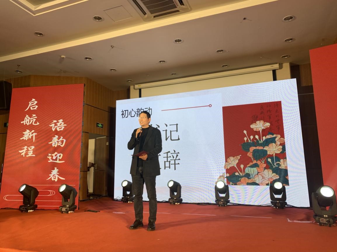 晚会伊始,丁炳泉老师亲切致辞,丁书记指出,回首2023年,外国语学院师生共同努力,表现出色,成果丰硕。学院始终坚持“善思笃行 内外通达”的办学理念,积极培养有卓越语言能力、跨文化沟通技能、有国际视野的外语人才。教师团队扎根学科,引导同学们积极参与专业竞赛、科技创新、学术交流和合作,勇攀科学高峰。同学们脚踏实地,在学科竞赛、学风建设等方面都做出了不俗的成绩。