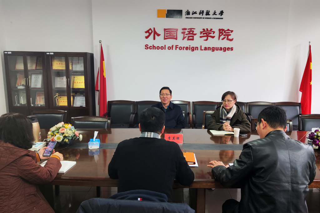 李校长听取汇报后,肯定了学院近年来所取得的工作成绩、新学期开学秩序良好,同时对学院当前及今后的发展提出了两点要求:一要提高政治站位,抓好意识形态工作,确保两会期间学院的安全稳定;二要学习领会“浙江省委新春第一会”会议精神,聚焦高水平人才队伍建设,在建设高水平科技大学总目标的基础上谋划外语学院的发展路径。