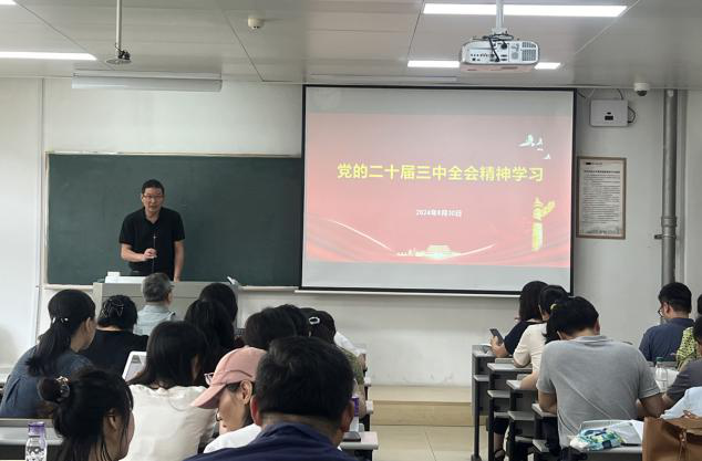 党委书记丁炳泉带领大家一起学习了“党的二十届三中全会精神”、“纪念邓小平同志诞辰120周年座谈会上的讲话”、《关于弘扬教育家精神加强新时代高素质专业化教师队伍建设的意见》及学校近期发布的文件。丁书记在会上还特别强调了“师德师风建设”问题,必须牢牢守住底线,提升教师职业道德素养,营造良好的教育生态。
