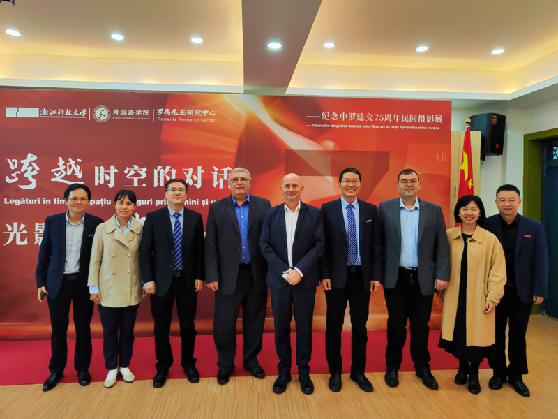 随后,克里斯蒂安·萨卡雷亚一行在外国语学院师生的陪同下参观了新建成的罗马尼亚馆及中罗建交75周年民间摄影展。