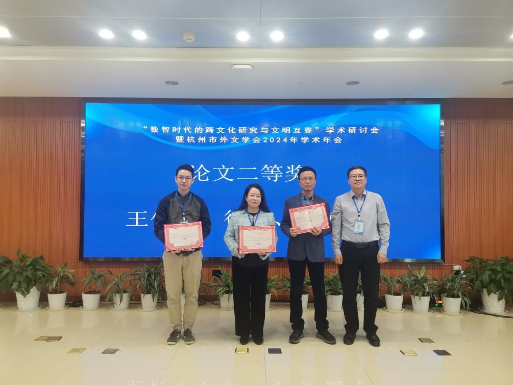 大会还举行了2024年度杭州市外文学会优秀论文成果奖颁奖仪式,我院教师王仁雷博士荣获二等奖。