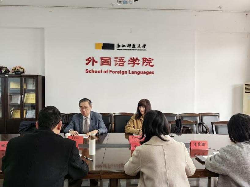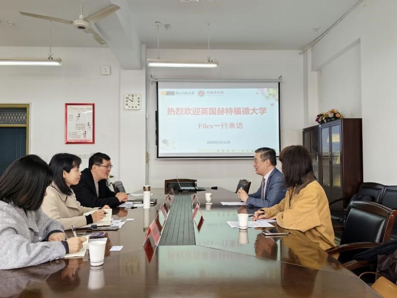 2025年3月11日,英国赫特福德大学(University of Hertfordshire, UH)物理、工程与计算机科学学院常务副院长Felix Zhu一行访问我院,受到外国语学院和国际处的热情接待,党委书记丁炳泉、副院长方小卿、国际处项目主管宋碧澄及外事秘书林宗豪共同出席。
