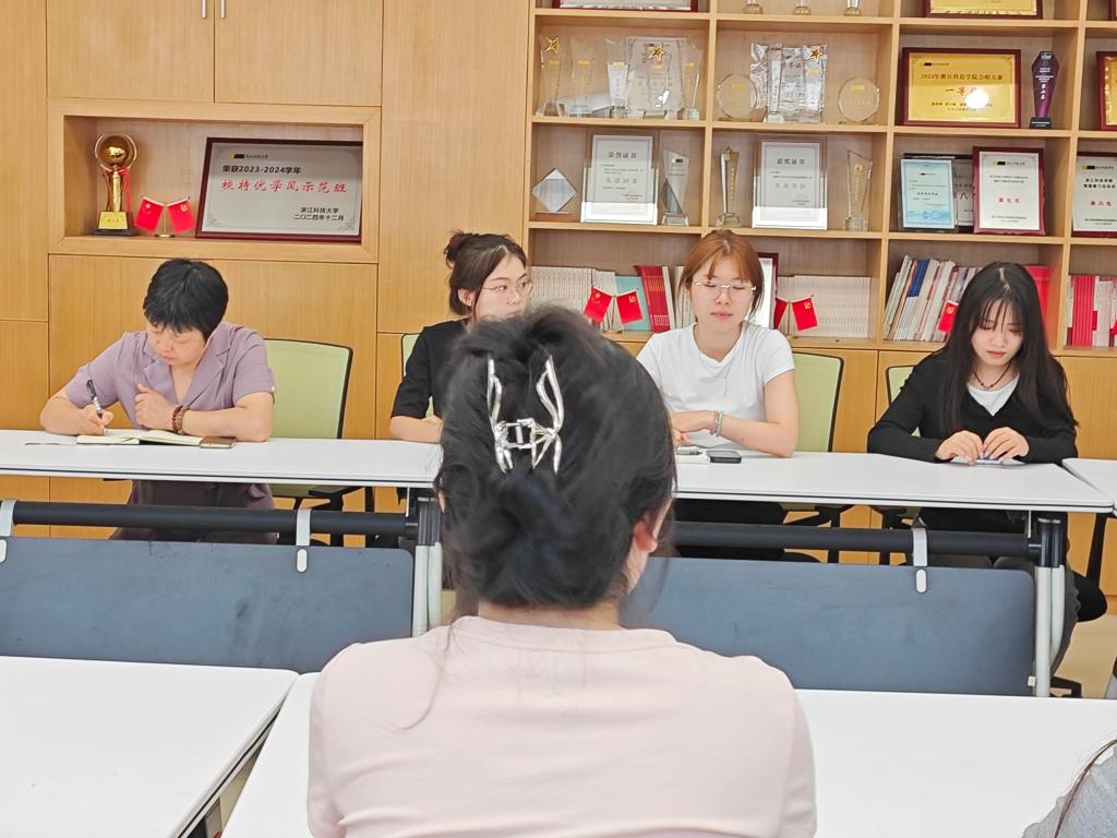 金老师和翟老师从学习、工作和生活各方面提醒同学们在海外志愿服务期间需要注意的问题,希望他们能维护好个人、学校和国家形象,在注意自身安全的前提下努力做好教学实践和中华文化传播工作,注意积累志愿服务的优质素材,积极向各大媒体投稿,扩大传播效应,展现浙科学子风范。