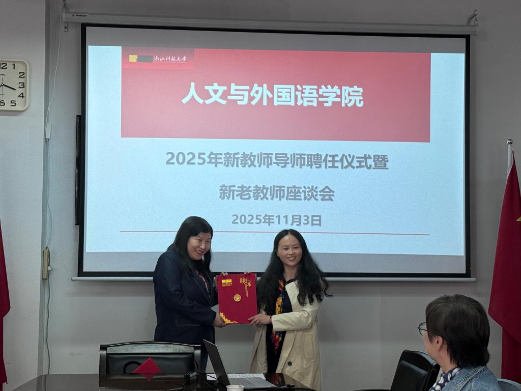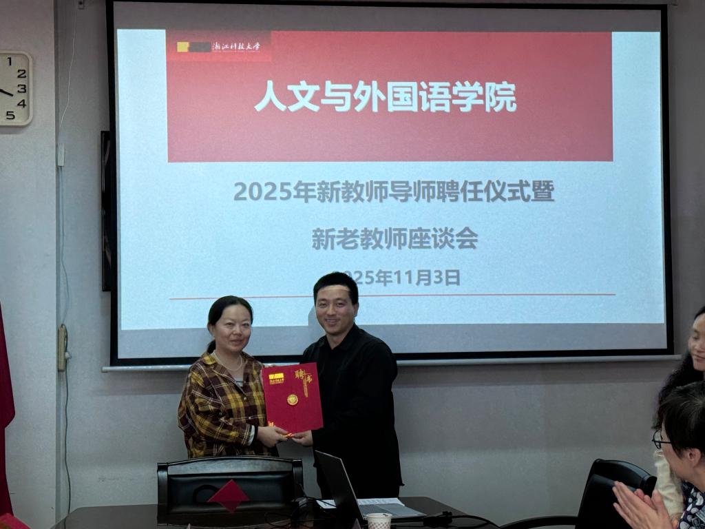 在导师聘任仪式上,叶晗、祝敏、施麟麒、杨瑞四位教师受聘为新教师导师。导师代表叶晗在发言中表示,作为导师,将努力成为新教师“教学上的引路人”“科研上的同行者”“生活上的知心友”。新教师代表黄露娜表达了对学院和导师的感谢,并承诺将以饱满热情投入工作,不负期望。