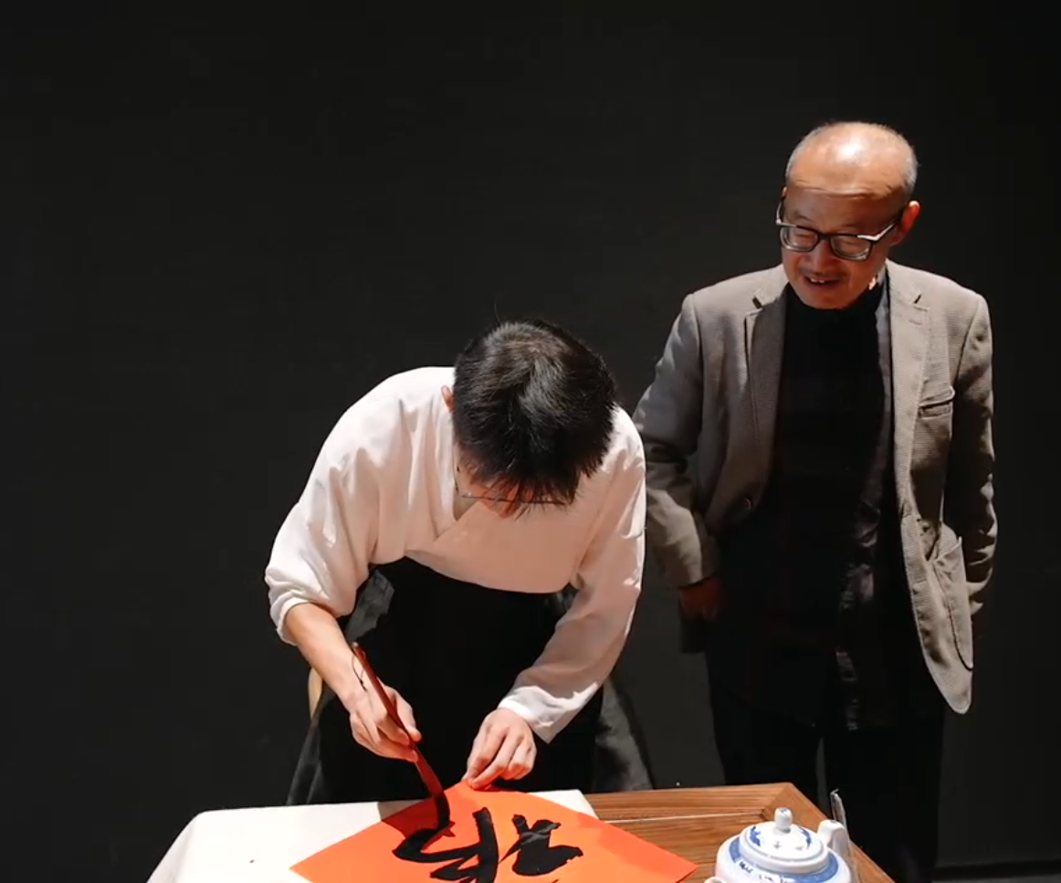 古琴家谈少飞老师与洞箫家俞国强老师带来的琴箫合奏《关山月》,意境苍茫悠远;《梧叶舞秋风》《高山》等古琴独奏,或清雅灵动,或巍峨磅礴;徐枝燕老师带来的一段昆曲《皂罗袍》,更是娓娓道出那百转千情,将传统曲艺的魅力推向高潮;我校书画协会成员现场挥毫,书写“福”字,与各表演环节相映成趣,共同营造出一个“视听嗅触”多维感知的中华文化场域。