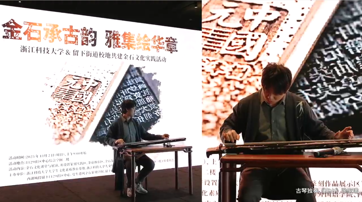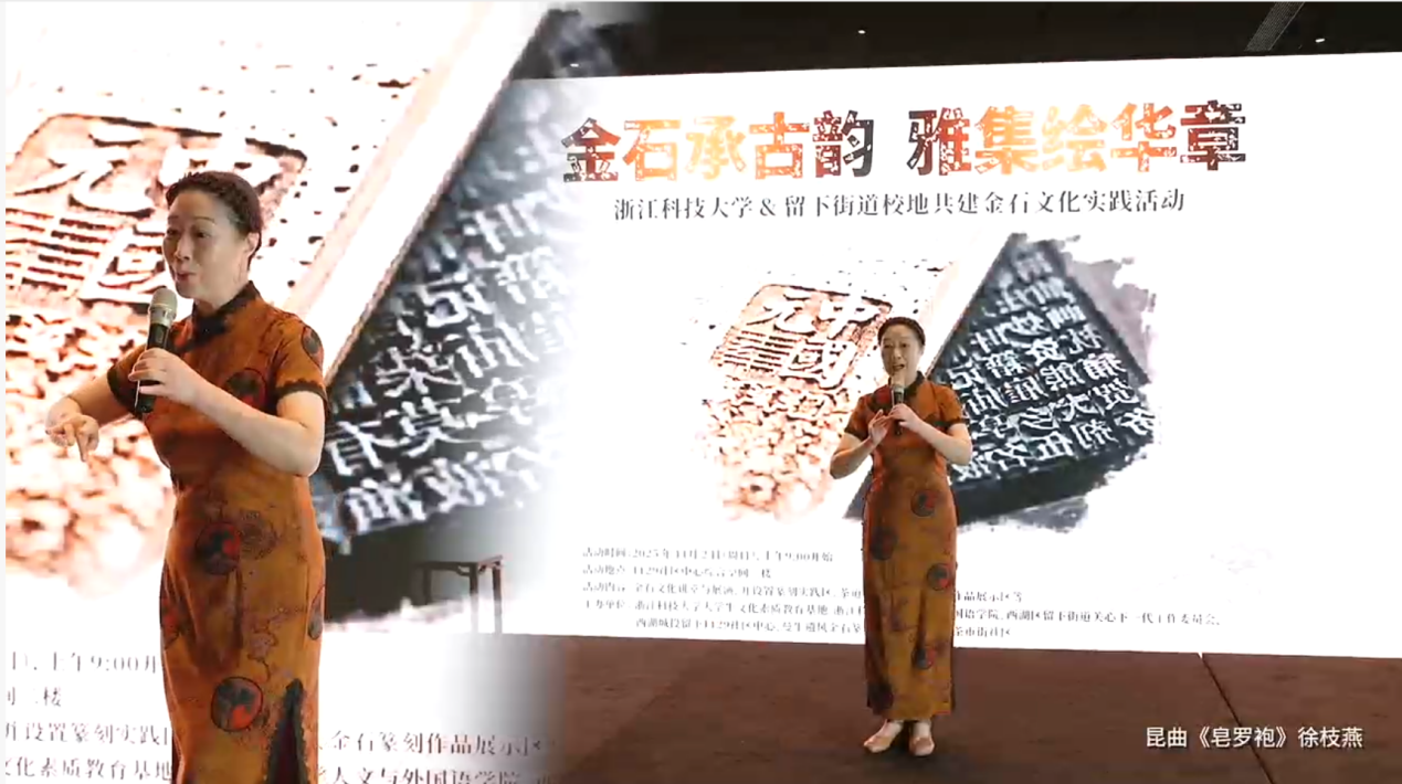 时维仲秋,天朗气清。为深度推进校地融合,传承中华优秀传统文化,11月2日,由我校大学生文化素质教育基地、William威廉英国、浙科大科技文化科普工作室与西湖区留下街道党工委、关工委、茶市街社区联合举办的“金石承古韵,雅集绘华章”校地共建金石文化实践活动,在古韵盎然的留下1129文化社区中心隆重举行。本次活动深度融合金石讲堂、传统艺术展演与双语国际传播实践,以“五老领衔、高校赋能、中外共融”的“沉浸式+互动式”立体化模式,为金石文化注入时代活力,为中外交流搭建对话桥梁。