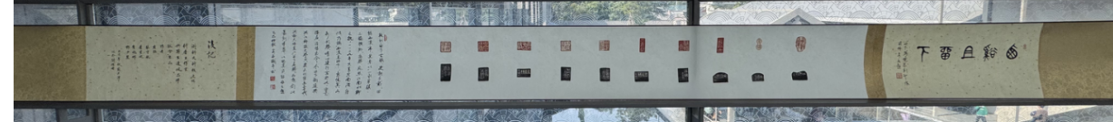 浙江省非遗协会金石篆刻专委会常务副会长、校外“金石五老”代表左家奇教授携手校大学生文化素质教育基地蔡宇航教师团队与曼生遗风非遗工作室主理人左珏,精心创作九方“西溪且留下”主题印章,成为全场焦点。在隆重的捐赠仪式上,这组承载着西溪文脉的印章拓印长卷被郑重交予留下街道收藏。这不仅是艺术作品,更是文化传承的火种,是校地情谊的重要见证。