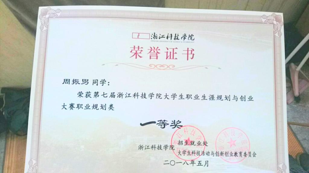 2018年5月23日,第七届浙江科技学院大学生职业生涯与创业大赛生涯类(A类)在B3-314举行,我院学生周振男以《PBLer 探索大人生》参赛作品斩获大赛本研组生涯规划类一等奖,展现了我院学生参加职业生涯规划与创业大赛的强劲潜力。