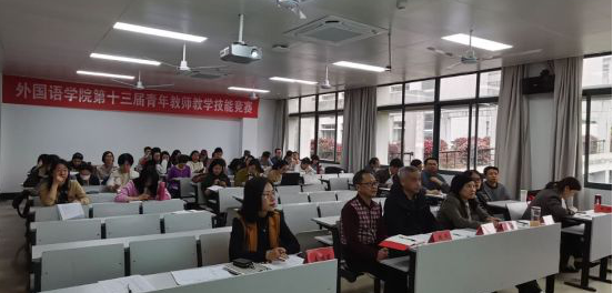 为进一步加强青年教师立德树人理念,锤炼教学基本功,发挥教学技能竞赛在提高教师队伍素质中的示范引领作用,进一步促进全院教师教育教学水平的整体提升,外国语学院于4月13日在闻理园A2-214举行第十三届青年教师教学技能竞赛。全院所有符合参赛条件的12名青年教师均参加了本次比赛,外国语学院全体教师在现场进行了观摩。本次比赛由外语学院副院长王旭莲主持,王金生教授、杨洋教授、叶依群教授、祝敏主任、甘晔主任等担任评委。