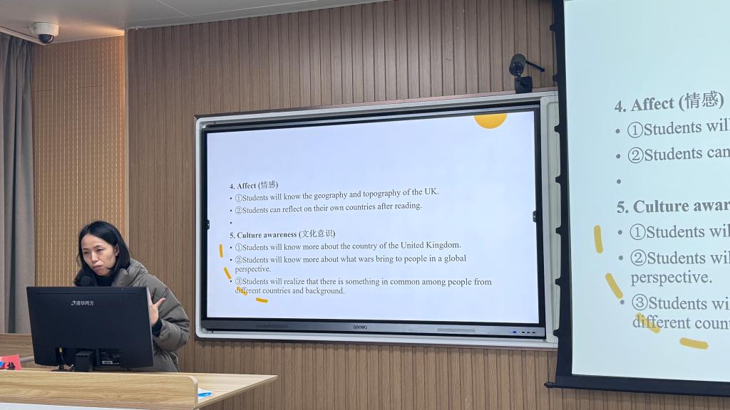 吴彬芳老师从教学目标、教材与学情分析、教学理念与方法以及教学反思等方面展开讲解,积极运用任务教学法、BPPP模式等教学方法,并在课堂中融入思政元素,培养学生的综合素养。