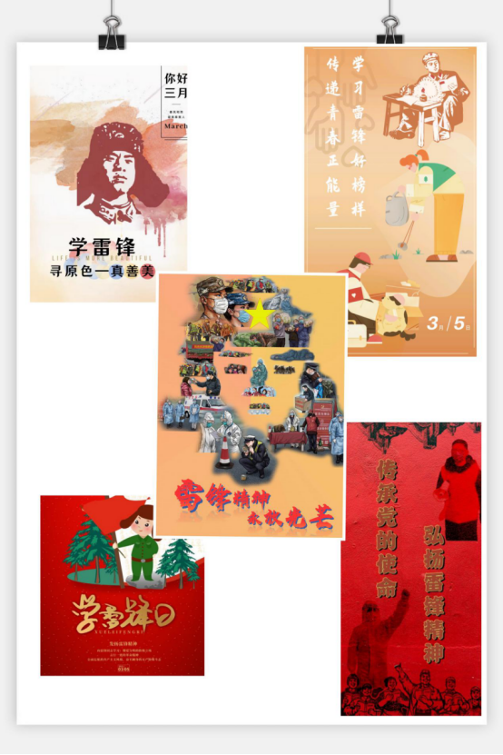雷锋主题海报充分展示了同学们不拘一格的想象力和创造力。同学们用画笔、电脑软件、手机app,并结合时代处境,创造了一幅又一幅形象生动的雷锋主题海报。海报上有任劳任怨的医护人员、穿入火海的逆行者、边防戍边的战士、人民公仆的时代楷模等等,伟大人物以及生活中的普通百姓都会在某一瞬间成为雷锋精神的传承人。