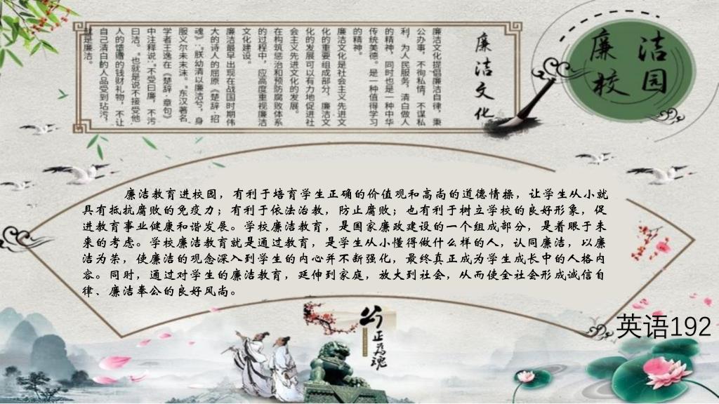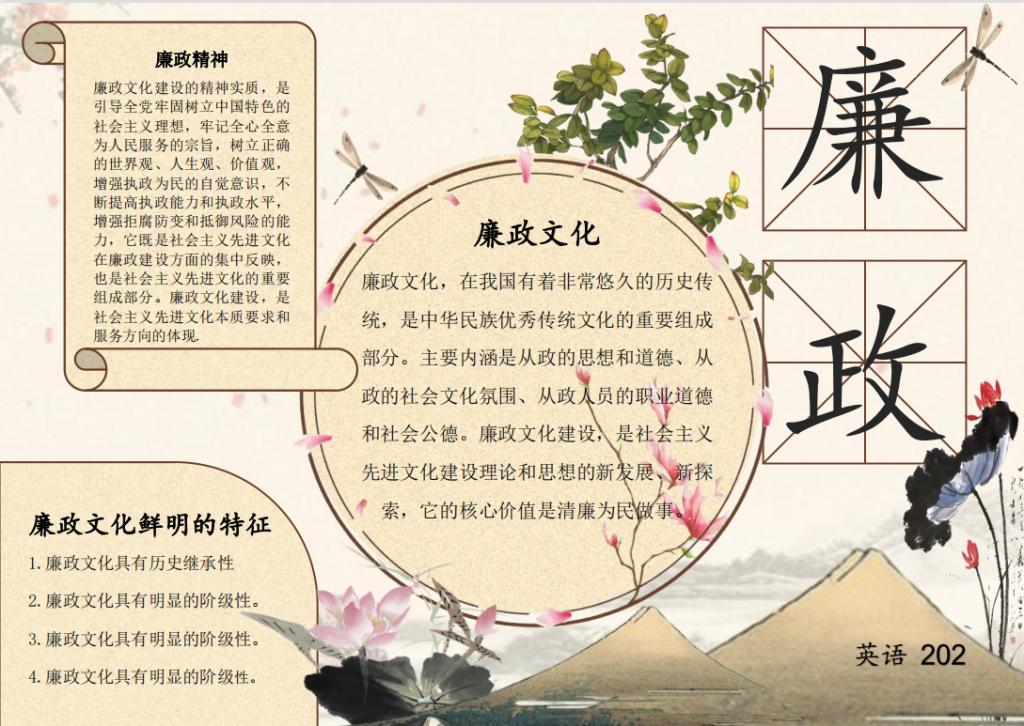 为加强校园清廉文化建设,树立“青莲外语”品牌1024,外国语学院开展了以廉洁为主题的黑板报评比活动,各班积极踊跃参与廉政文化建设,设计了有创意的黑板报。积极弘扬和宣传廉洁文化,营造了浓厚的学院廉洁文化氛围。