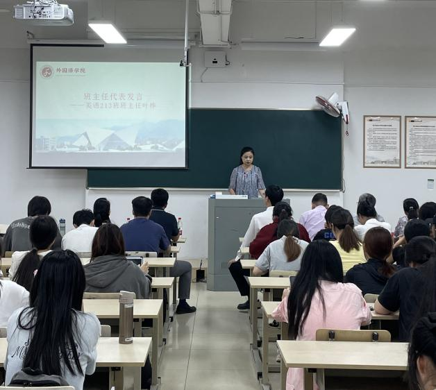 随后,班主任代表叶桦老师明确指出我们应当认可英语专业的独有优势,同时也不应忽视当前所面临的就业挑战。回顾了往届毕业生的良好就业业绩,并着重强调了团队合作的重要性。