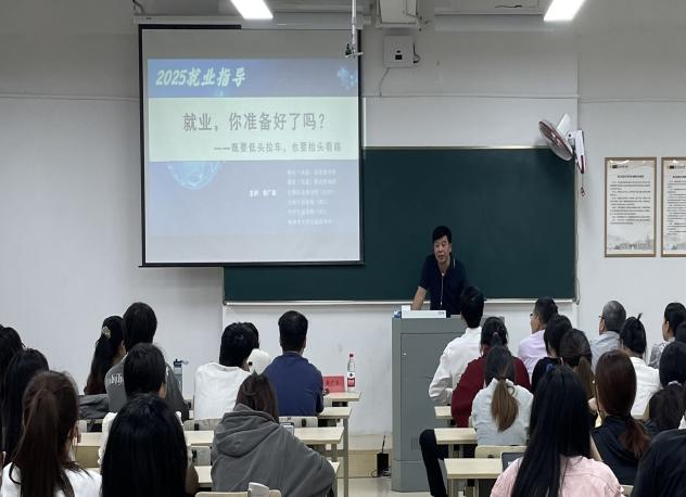 动员大会第一阶段,方小卿副书记对当前就业形势进行了分析,着重强调树立正确就业观的重要性。同时,对学院的就业奖励政策和校企合作基地进行了介绍,并提醒同学们密切关注发布的招聘信息。