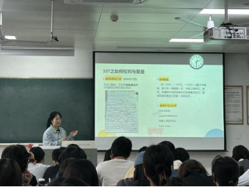 吴华栋学姐则从翻译学考研的角度出发,分享了她的全程经验,并毫无保留地向同学们分享了她认为好用的资料和资源。她强调校对与复盘的重要性,同时分享了很多实用技巧。此外,她还提到了调整心态和把握节奏的重要性,建议在备考中避免过度疲劳。