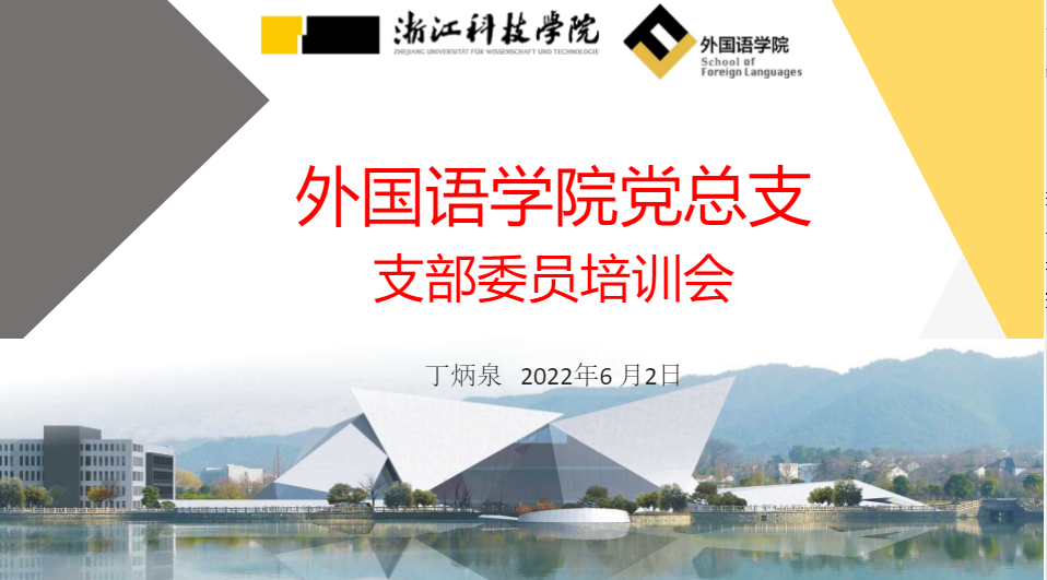 为进一步提升支部委员的党务工作能力和基层党建工作质量,2022年6月2日下午,外国语学院党总支在A3-306会议室召开支部换届后的支部委员培训会。会议由学院党总支书记丁炳泉主讲,全体教工、学生党支部的书记和委员参加培训。首先,丁炳泉书记深入解读了支部建设的指导文件《中国共产党普通高等学校基层组织工作条例》细则,并详细介绍了《条例》修订的背景、过程和意义。他表示,《条例》的修订和实施,对党员教育管理、发挥党员作用、发展党员工作提出明确要求,支部各位委员要深入领会《条例》精神,全面掌握《条例》内容,以便更好地贯彻党的教育方针,落实立德树人根本任务。随后,丁书记带领大家认真学习了《教育部办公厅关于开展第三批新时代高校党建示范创建和质量创优工作的通知》和《新时代高校党建“双创”工作重点任务指南》。