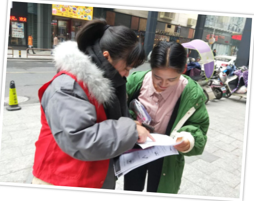 当天下午,志愿者同学们身穿红色志愿者服,虽然天气寒冷,但同学们的热情丝毫不减,认真掌握宣传内容,希望能够更好地给市民讲解治水知识。同学们向街道上的行人发宣传单,同时耐心细致地为民众讲解宣传展架和宣传单的内容,并向群众分享了节水治水理念与措施,如分析我国及世界水资源现状,关于保护水资源、水环境的重大意义,“五水共治”理念讲解和个人如何做到节约用水的途径,为街道添上了几抹亮丽的色彩。