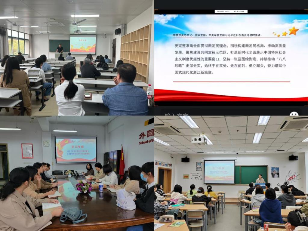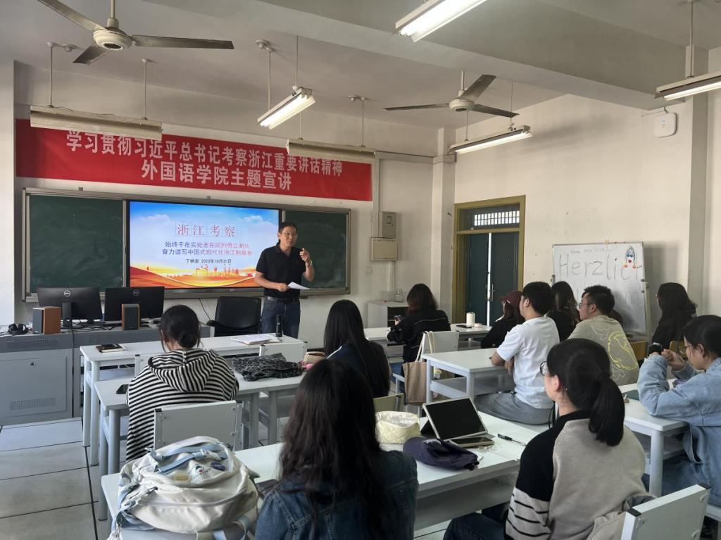 为认真学习贯彻落实习近平总书记考察浙江的重要讲话精神,外国语学院通过主题党课、大会宣讲、现场学习、特色理论宣讲团等多种形式在多个场合开展丰富多彩的宣讲学习活动。