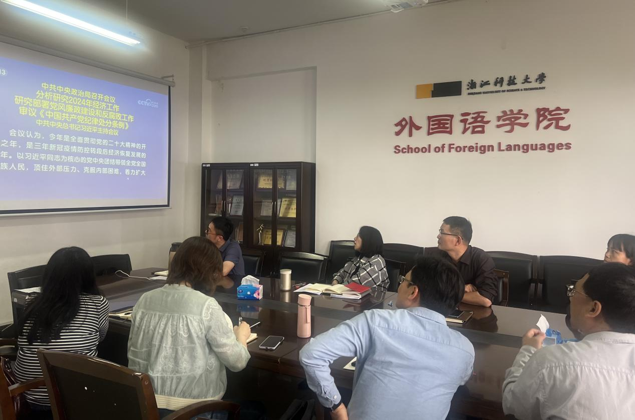 5月9日下午,外国语学院党委理论学习中心组在学院会议室召开党纪学习教育专题学习会,在前期动员部署会和个人自学的基础上,专题学习贯彻习近平总书记关于党纪学习教育的重要讲话和重要指示精神,重点围绕修订后的《中国共产党纪律处分条例》和《中国共产党巡视工作条例》开展学习和深入研讨。学院党委书记丁炳泉主持会议,院党委委员、支部书记、各系部负责人等理论学习中心组成员参加会议。