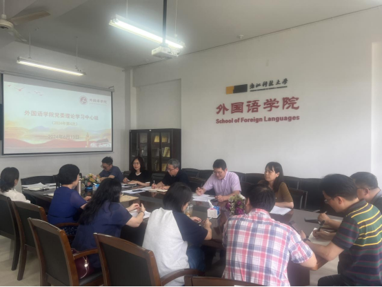 6月13日下午,外国语学院党委召开理论学习中心组会议,开展党纪警示教育,并集中学习《中国共产党纪律处分条例》、习近平总书记为第六批全国干部学习培训教材所作《序言》精神、浙江优秀传统文化等相关内容,还学习了习近平总书记重要复信精神。学院党委书记丁炳泉主持会议,院党委委员、支部书记、各系部负责人等理论学习中心组成员参加学习。