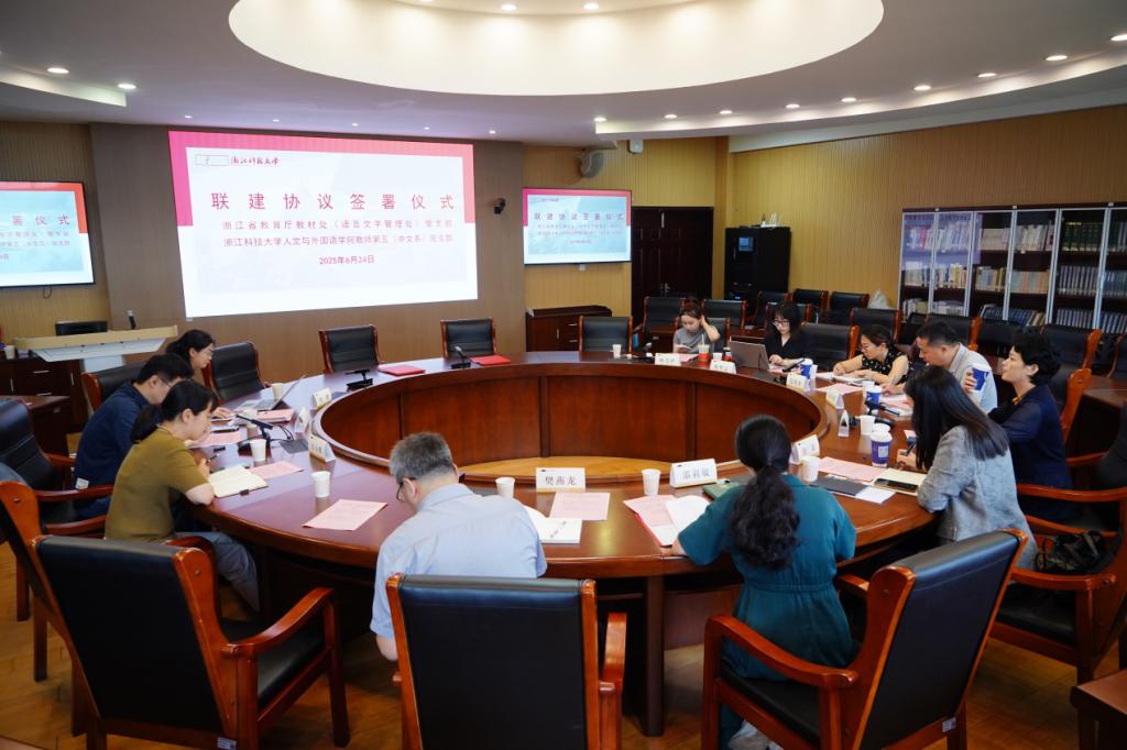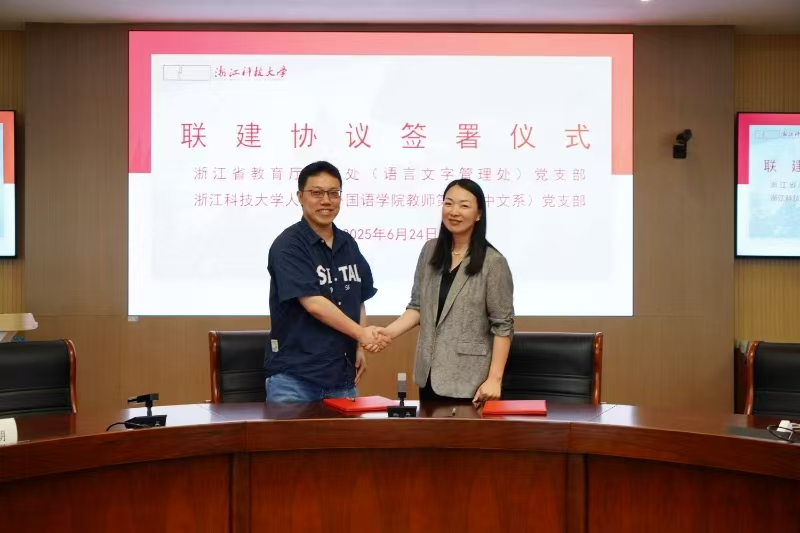 联建协议由省教育厅教材管理处(语言文字应用管理处)党支部书记徐漾同志与学院教师第五(中文系)党支部书记吴众老师签署。